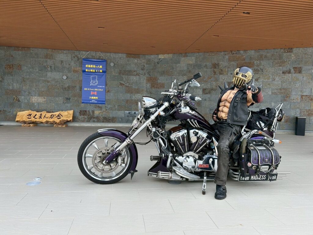 漫画『北斗の拳』のキャラクター・ジャギの装いで活動されている茨ジャギさんが、この連休中に佐久市に降臨!今回は、タク技研もご一緒し、佐久の名所やグルメを巡る“聖地巡礼”の2日間となりました。